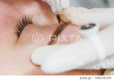 Beautician applying permanent makup