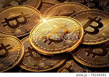 積み重なる金色のビットコイン