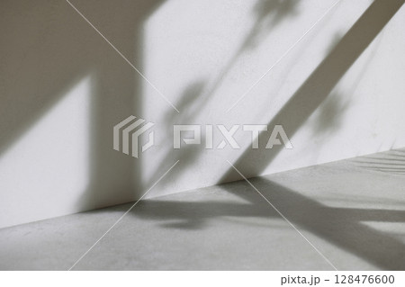 Concrete texture background with shadows from natural light streaming through a window.