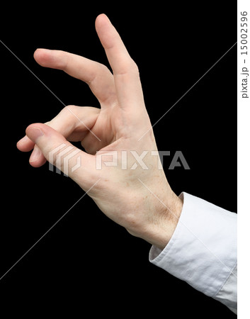Hand emitting a dog on black