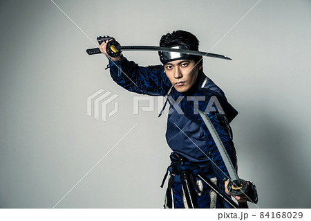 日本刀を振う剣士のポートレート 武道 武士 サムライ