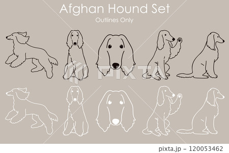 シンプルで可愛いアフガンハウンドの線画セット