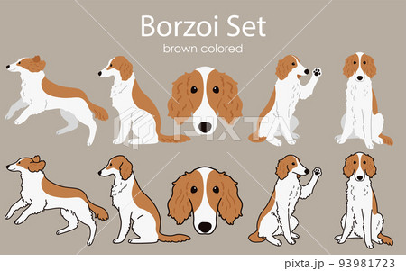 シンプルで可愛い茶色のボルゾイのイラストセット 主線あり・なし