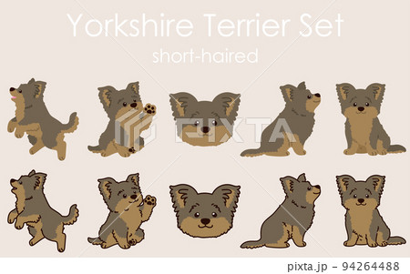シンプルで可愛いヨークシャテリアのイラストセット 主線あり