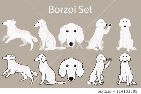 シンプルで可愛いボルゾイのイラストセット 主線あり