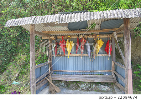 日本の山梨にある小さなタクシー乗り場の小屋