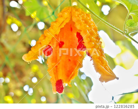 熟して割れたゴーヤの実