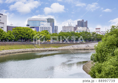 岡山後楽園 旭川と街並み