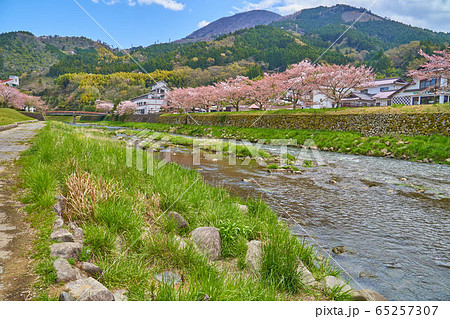 島根(山陰の小京都)の津和野町の津和野大橋の下から東側を見る