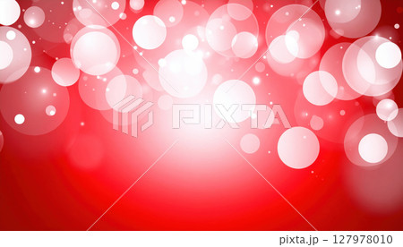 Bright red background with white bokeh circles creating festive atmosphere