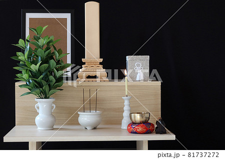 ステージ型祭壇に置かれた骨壺とお位牌 終活と自宅での供養のイメージ22