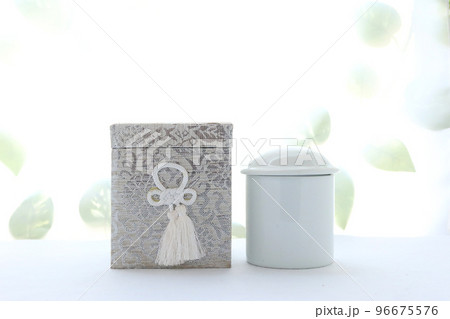 窓辺に置かれた手元供養用の骨壺と位牌 終活のイメージ4