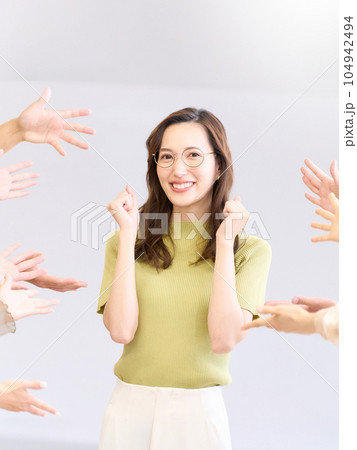 称賛を受けてガッツポーズをする若い女性