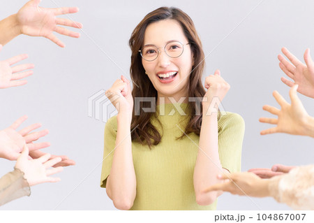 称賛を受けてガッツポーズをする若い女性