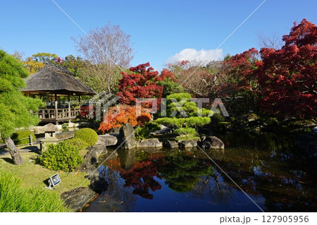 紅葉が美しい秋の好古園 築山池泉の庭