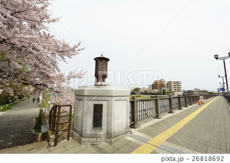 杜の都仙台 早春 広瀬川 広瀬橋 橋姫神社 石碑
