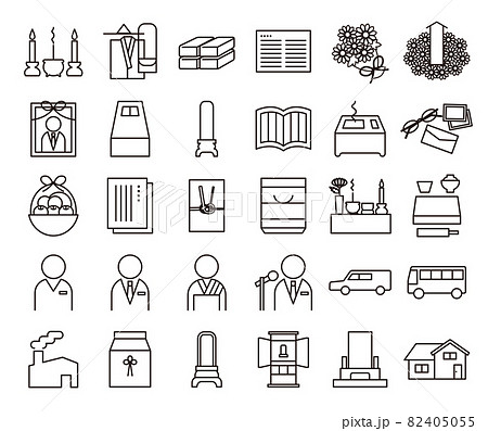 仏事シリーズ3 法事・彼岸 カラーラインアイコンのセット