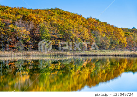 岩手県八幡平市にある御在所沼の秋の風景