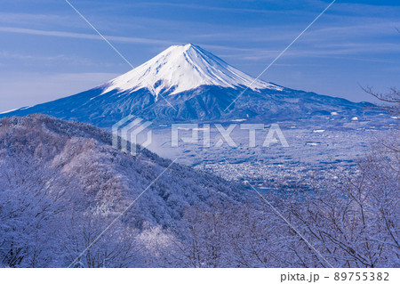 (山梨県)日本の冬景色・雪が降った御坂峠から望む富士山
