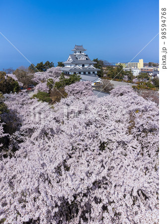 4月滋賀・長浜 長浜城天守閣と桜と琵琶湖(夕景)