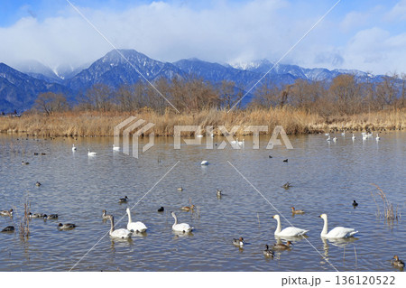 冬の安曇野 御宝田遊水池の白鳥