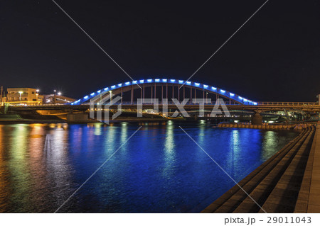 静岡県沼津市 夜の狩野川、ライトアップされた御成橋