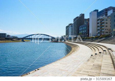 静岡県沼津市 狩野川と市街地の街並み 永代橋から
