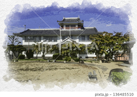 水彩画風 姫路御着 御着城本丸跡 御国野公民館 兵庫県姫路市