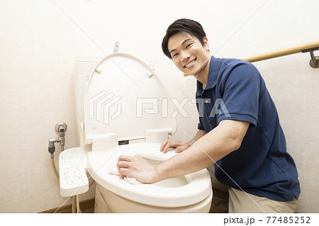 トイレの清掃をするハウスクリーニングの男性作業員