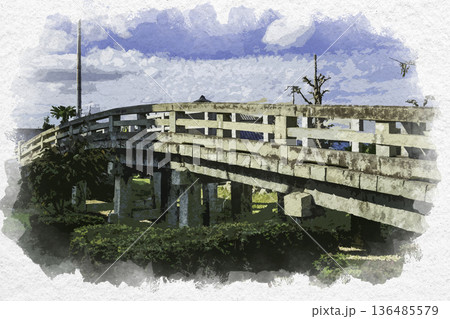 水彩画風 姫路御着 天川橋 兵庫県姫路市