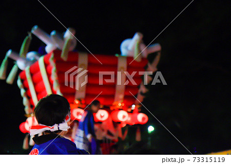 夏祭りの風景 神輿と子供達