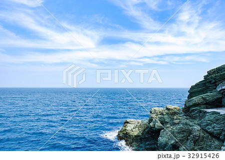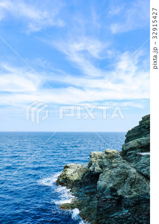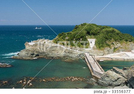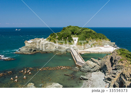 「愛媛県」佐田岬灯台より御籠島を望む 青い海と水平線