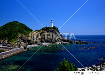 四国・愛媛・佐田岬・御籠島・御籠島展望所から眺める、青空に映える佐田岬灯台・愛媛県伊方町(2)