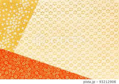 白と金色のもみ和紙と桜柄の千代紙の和風背景