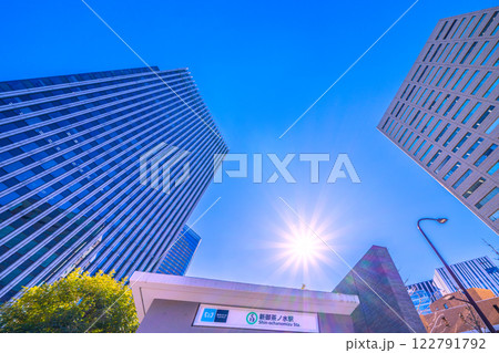 日本の東京都市景観 新御茶ノ水駅や御茶ノ水ソラシティ、ワテラスなどを望む。新時代に希望の光=10日