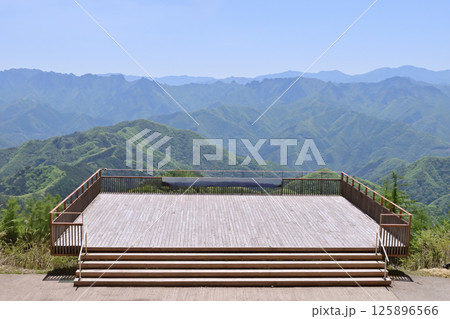 晴れた空と御荷鉾スーパー林道展望台から望むの山並み/群馬県