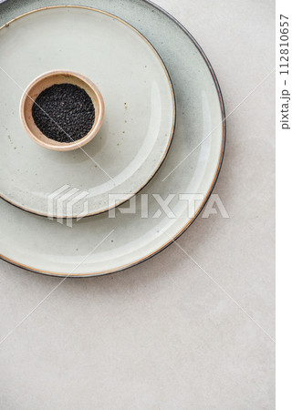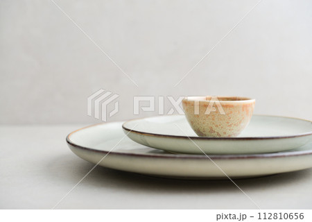 Table etiquette. Stack of serving plates of different sizes flat isolated