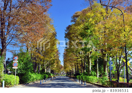 紅葉した欅並木が続く多摩御陵参道