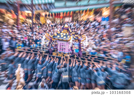 日本の東京都市景観 三社祭4年ぶり完全復活!雷門の交差点で担ぎ手が交代し再び…=5月21日・最終日