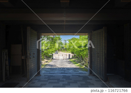 真夏の青空に映える岡崎城大手門[岡崎城公園/愛知県岡崎市]