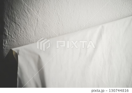 White fabric draped on textured wall in a minimalist setting