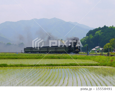 田園広がる、阿東徳佐を快走する SLやまぐち号