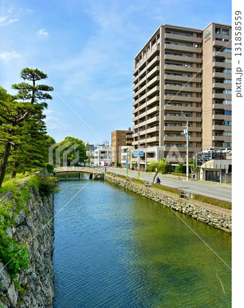 都市と自然が調和する徳島城跡のお堀|透明な水と青空の街並み