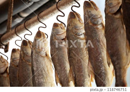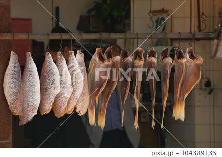 香港・徳輔道西で売られる塩干し魚(ハムユイ)。クサヤに似ていで臭いが美味。かつては安かったが今は高価