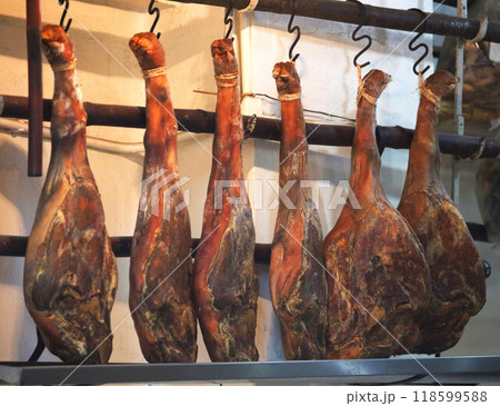 香港・徳輔道西で売られる中国ハム(金華火腿と呼ばれる雲南省のハム)