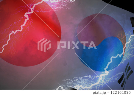 日本と韓国 国旗ミックス / バナー・背景素材(汚れ・焦げ)/日韓問題・日韓政治的対立