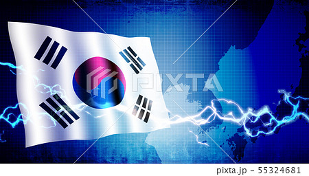 バナー・背景素材 / 韓国国旗と東アジア地図 /クール・青系・ビジネス・政治・国際情勢