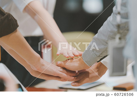 ビジネスチームの団結を象徴する手重ねの瞬間|チームワーク・協力のイメージ
