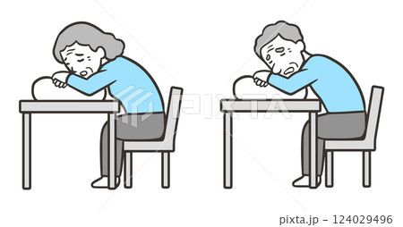 起座呼吸、椅子に座ってクッションにもたれている高齢者の女性と男性