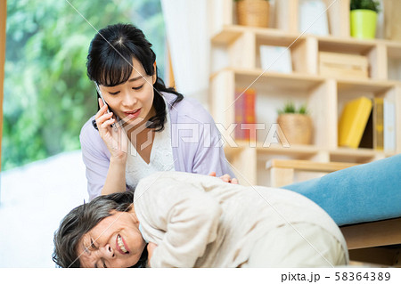 急病で倒れた母親のために救急車を呼ぶ娘 親子 母子